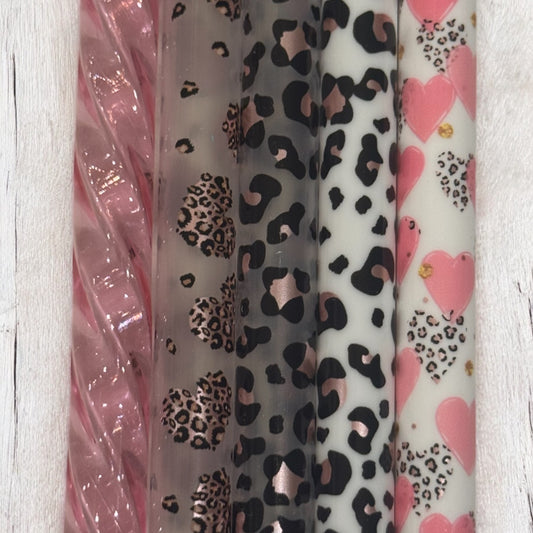 Pink Leopard & Hearts Straw Set | 5 Pack | 40oz Tumbler | Wide Fit